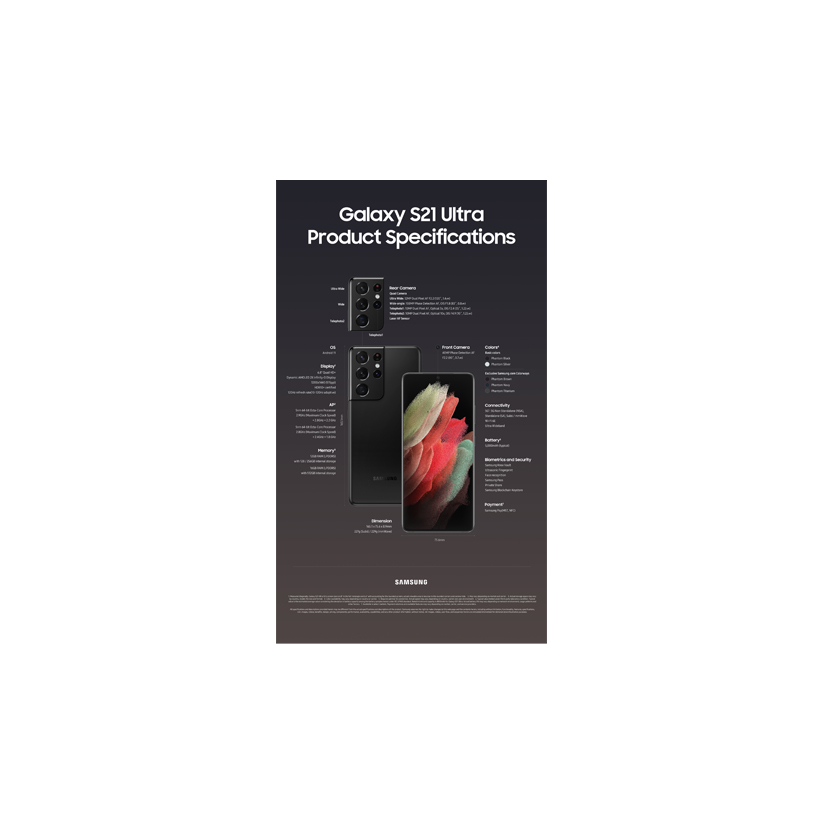 Samsung Galaxy S21 Ultra 5G, US Version, 128GB, Phantom Black